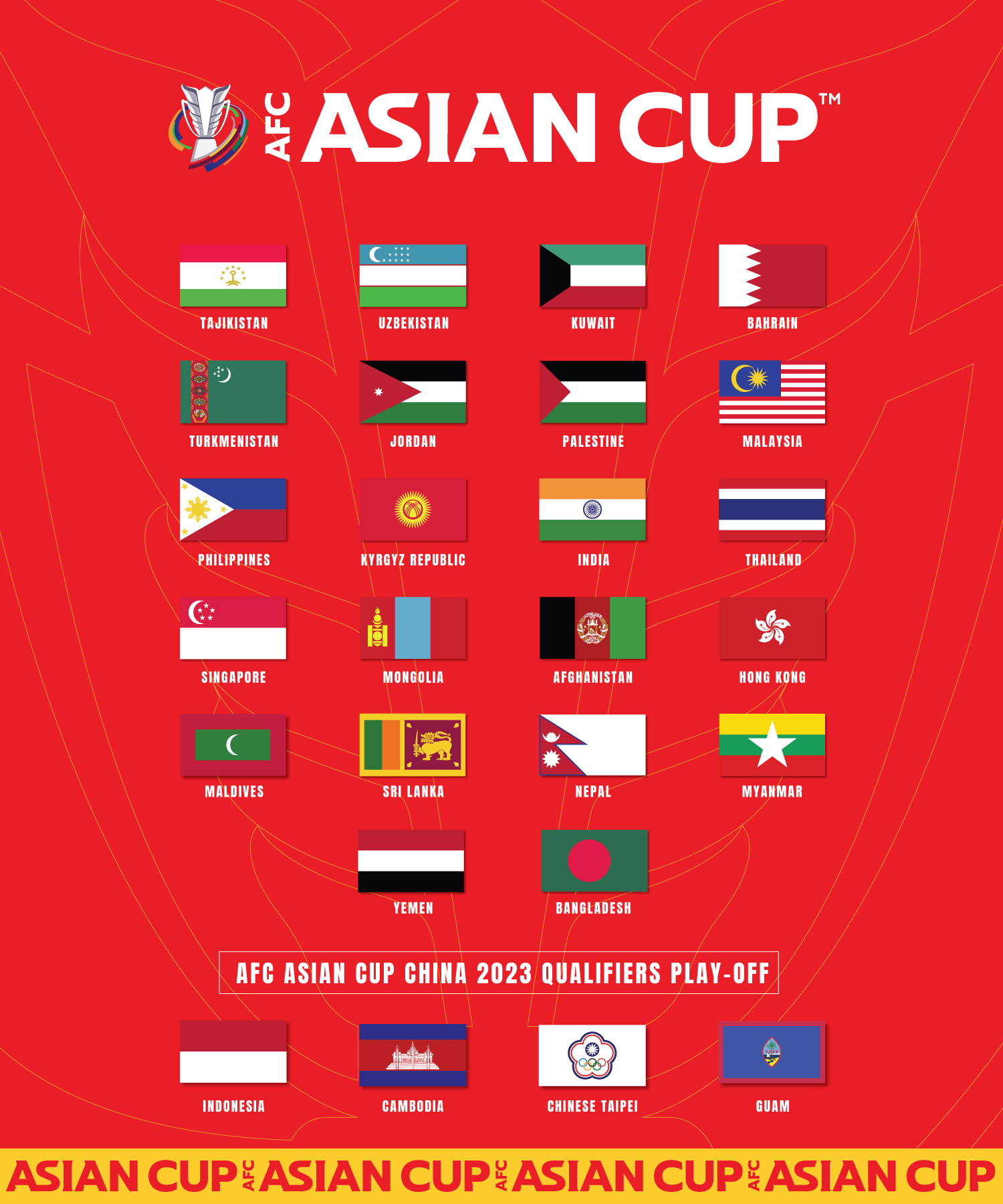 Afc asian cup 2023 play off. The AFC Asian Cup qualifiers play-off teams Indonesia Cambodia Chinese Taipei. The confederation is the governing body of the game in Asia and is the most populous of FIFAs six confederations representing over half of the worlds football fans encompassing 46 Member Associations with a population of over 37 billion people. Since the 2023 hosts China advanced to the third round of the 2022 FIFA World Cup qualifiers the automatic slot for the hosts was no longer necessary.